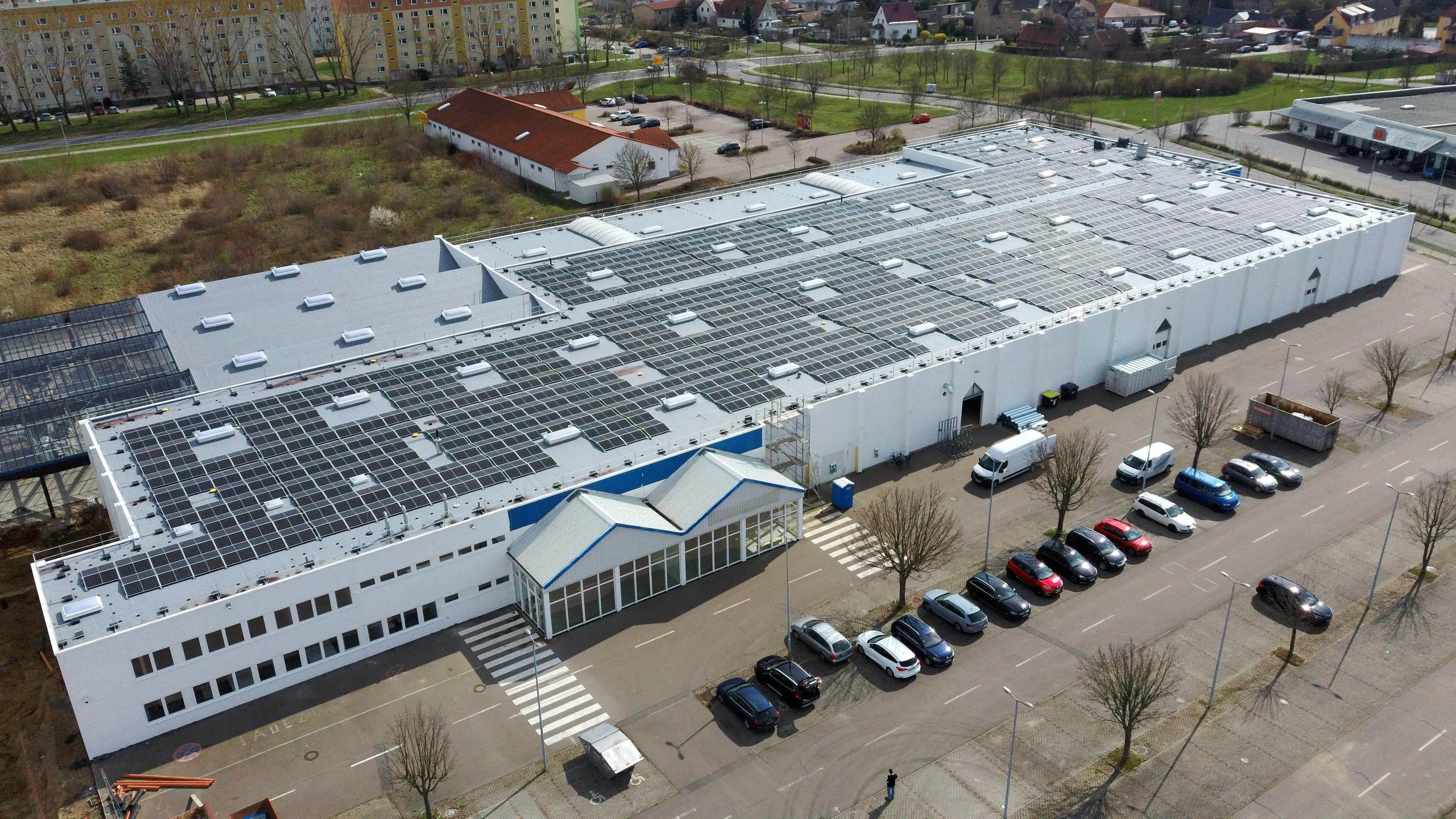 Bereits 2021 hatten wir eine passende Option im Industrie- und Gewerbegebiet Zeithain gefunden - in Form eines ehemaligen Baumarkts in direkter Nähe des Firmensitzes. Seit 2023 besitzt Labelprint24 nun eine hochmoderne Produktionsstätte für Verpackungsmittel wie Faltschachteln, Etiketten und Versandkartons. Die neue Halle ist nicht nur Produktionsstandort, sondern bietet auf 9.500 m² ausreichend Platz für Lagerflächen und Büros. Gleichzeitig war der Ausbau eine Investition in eine immer nachhaltigere und grüne Produktion - mit einer ressourcenschonenden Heizungsanlage und einer großen Photovoltaikanlage auf dem Dach der Halle.