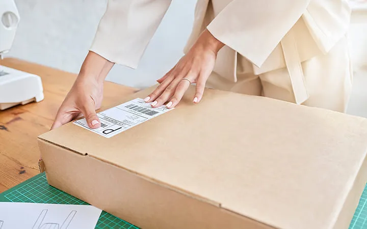 Our roll labels are supplied on continuous rolls. They can be applied quickly and easily with the help of a labelling machine. These labels are used, for example, as shipping labels or packaging labels. The width of the labels is individually configurable and can thus be easily adapted to the respective requirements.