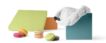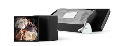 Choose according to your wishes ! In our online calculator, type, dimension, material, colour and finishing are freely selectable. You want your packaging to be safe and noble from the inside as well? With the help of an inlay, products such as cosmetics or delicatessen can be transported safely and presented in a visually appealing way.