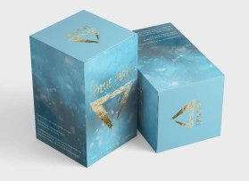 Folding boxes with tuck-in flaps consist of only one body made of paperboard, plastic, or corrugated board printed before punching, gluing, and assembly. All of the typical finishes for printed matter are also available. Print coatings and hot or cold foil stamping on the folding carton are particularly popular, either to protect the packaging from external influences or to improve its feel and appearance. Folding boxes with tuck-in flaps are some of the most refined packaging materials available.