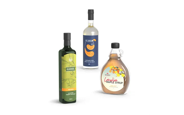 Les étiquettes pour bouteilles sont imprimées pour les boissons avec ou sans alcool, comme les bouteilles de vin, les bouteilles de bière, les bouteilles de liqueur maison, les spiritueux, les bouteilles d'eau, de jus de fruits ou de sodas. Bien entendu, il existe également des étiquettes pour bouteilles destinées à des liquides qui ne peuvent pas être classés dans la catégorie des boissons, par exemple pour les huiles alimentaires, dans la chimie, la pharmacie, les cosmétiques ou d'autres industries. Pour ces différentes étiquettes de bouteilles avec leurs exigences ou conditions individuelles, il existe différents matériaux, tels que papier ou film.